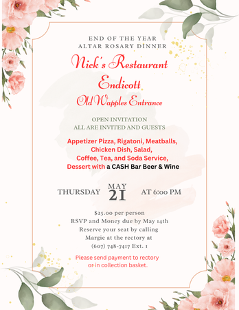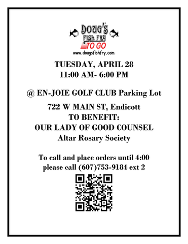 Proceedes benefit OLGC Altar Rosary Society. Call (607) - 753 - 9184 ext. 2