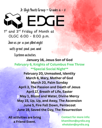 Join us for our EDGE middle school youth group on 1st and 3rd Fridays!